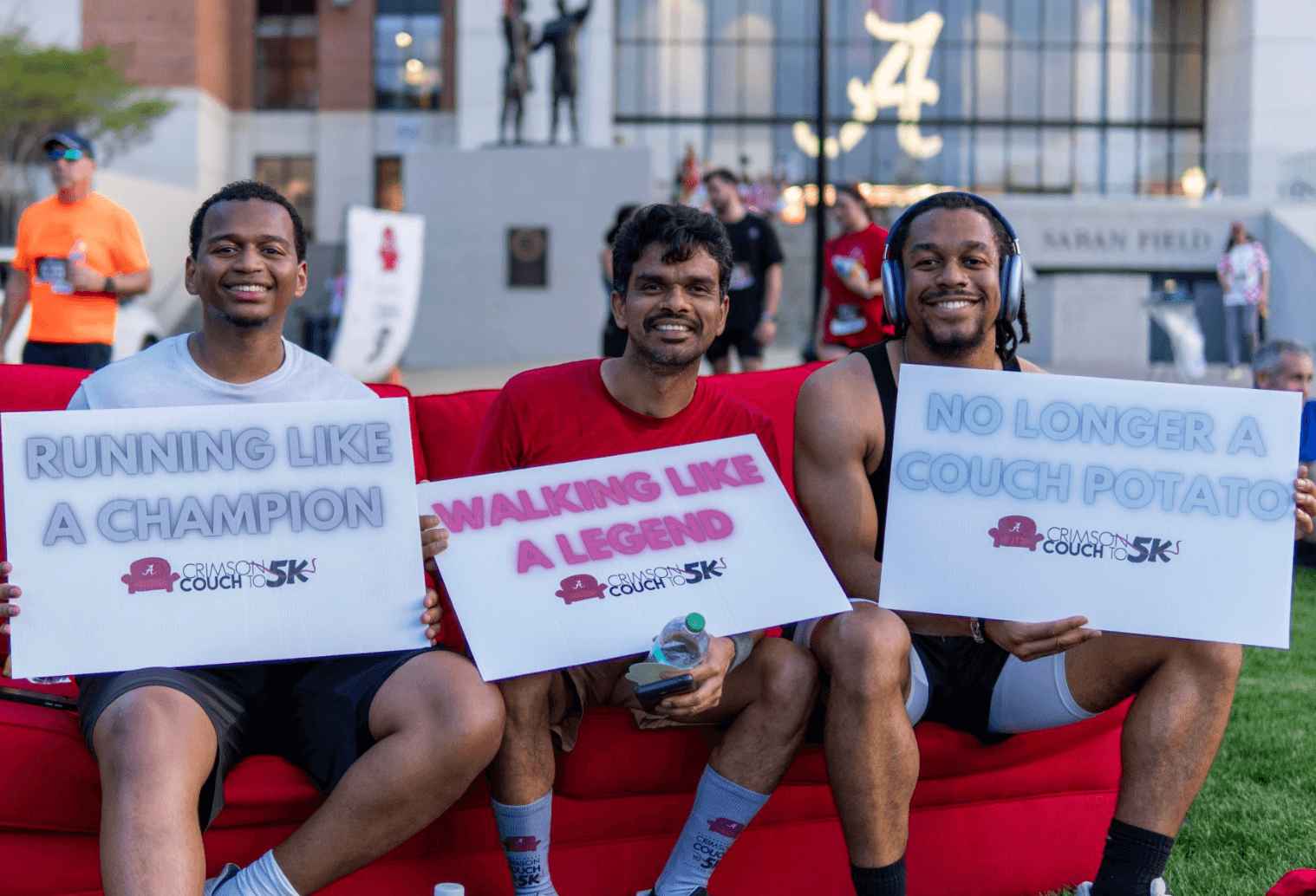 The 16th Annual Crimson Couch to 5K is a run/walk event scheduled for Saturday March 7th, 2025 at 9am. The start and finish line is located at the Walk of Champions where runners and walkers have plenty of space to enjoy the event and the perfect photo op with Bryant-Denny Stadium! We welcome UA employees, students, families, and the community to participate in the 5K following our scenic route around campus.