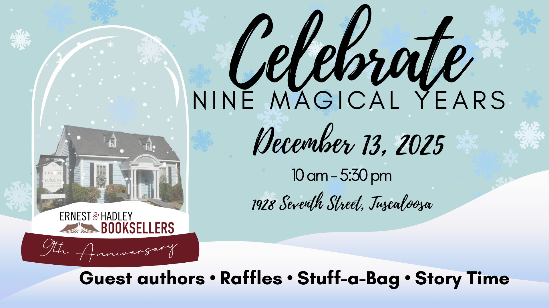 Join Ernest & Hadley Booksellers as we celebrate 9 years of stories, community, and independent bookselling! 🎉📚