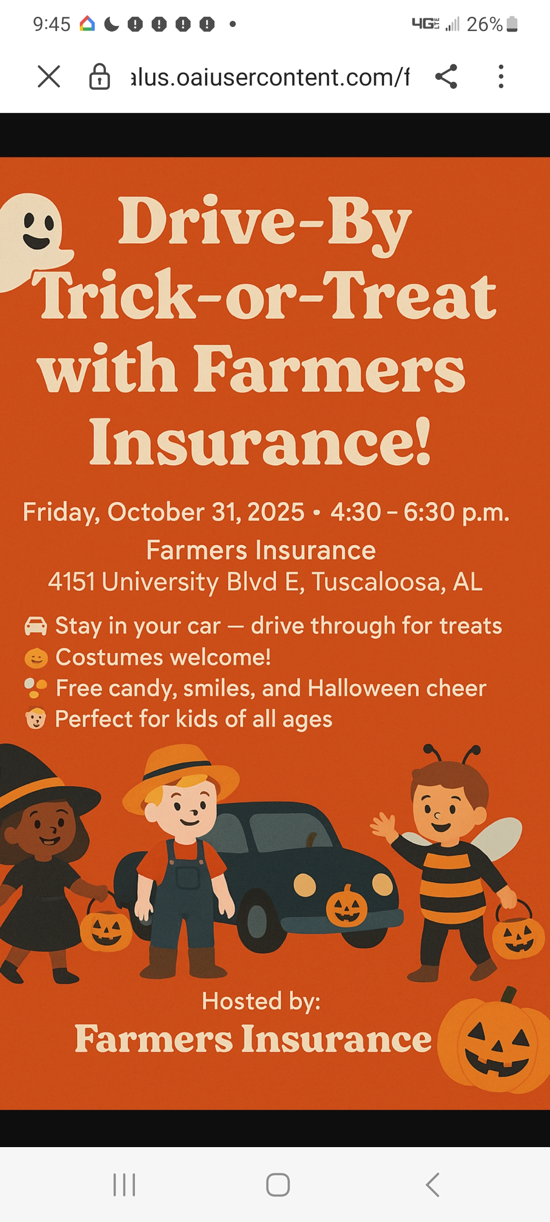 Farmers Insurance Purse Agency will be hosting a Drive By Halloween Treat in the Trunk